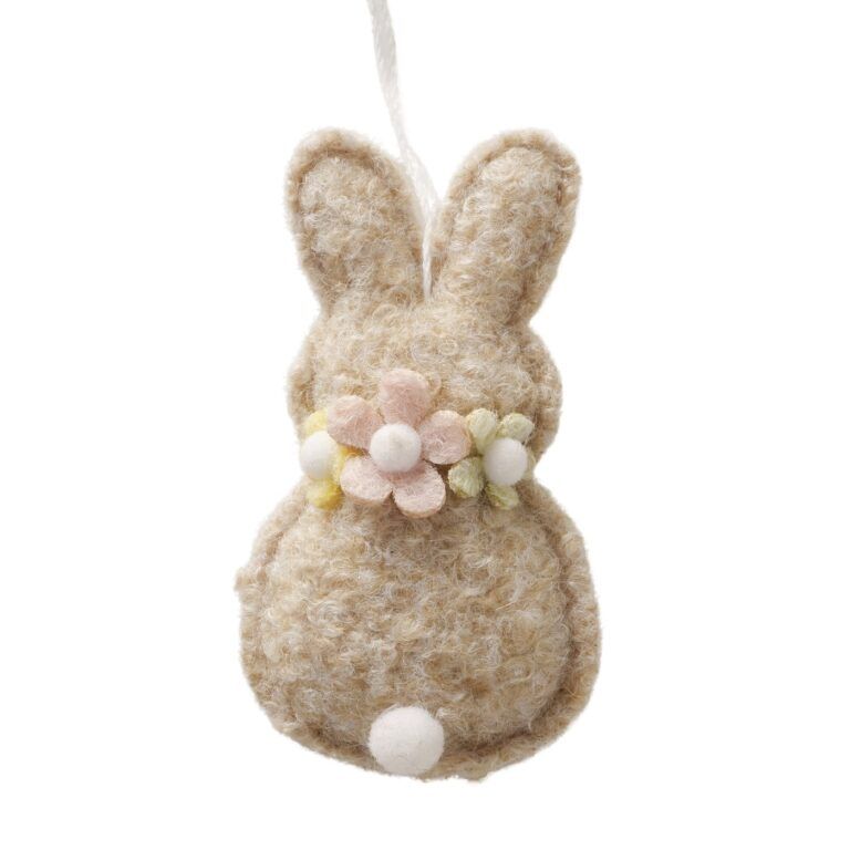Aufhänger Hase mit Blumenkranz in hellbraun