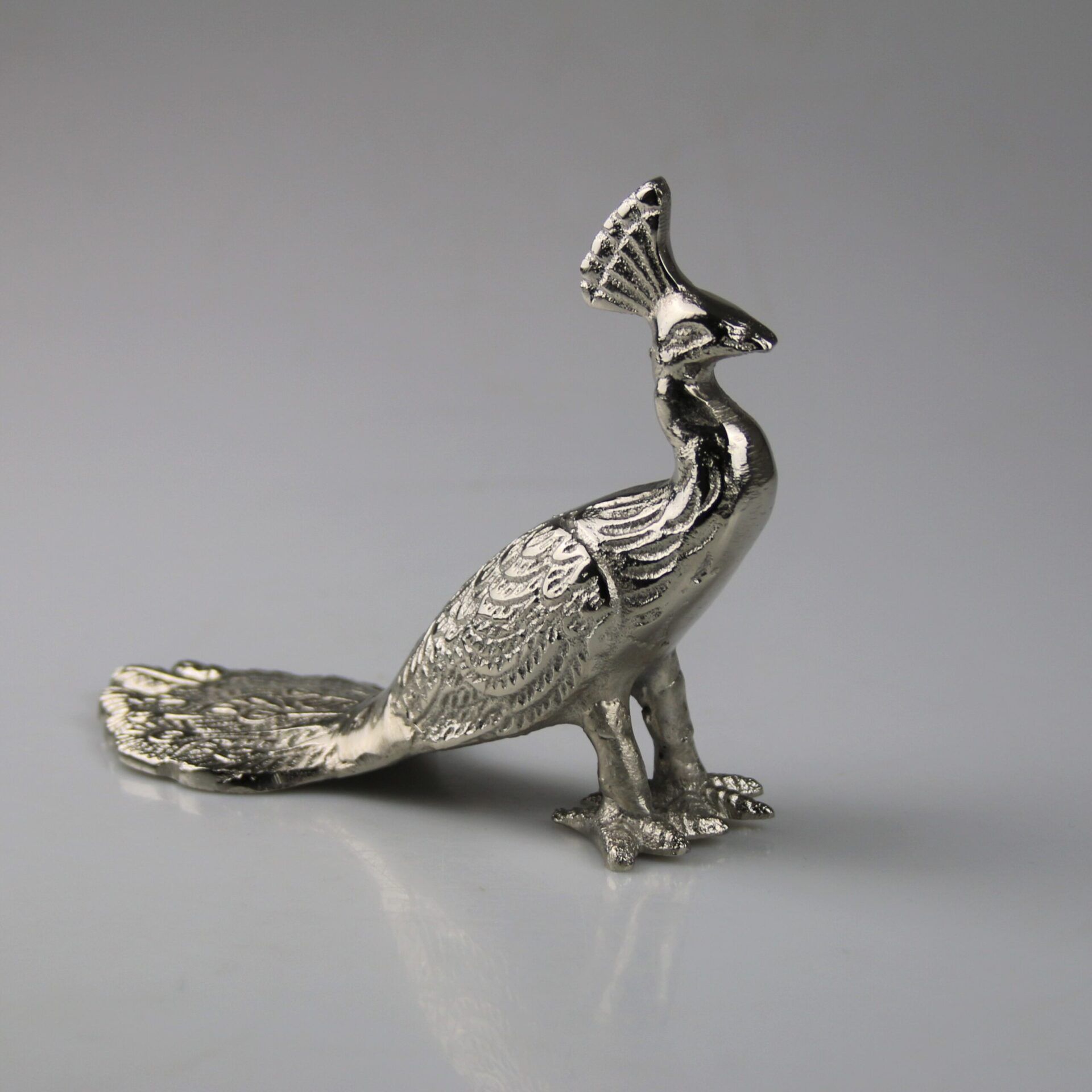 Pfau in Silber aus Aluminium 11.5 cm