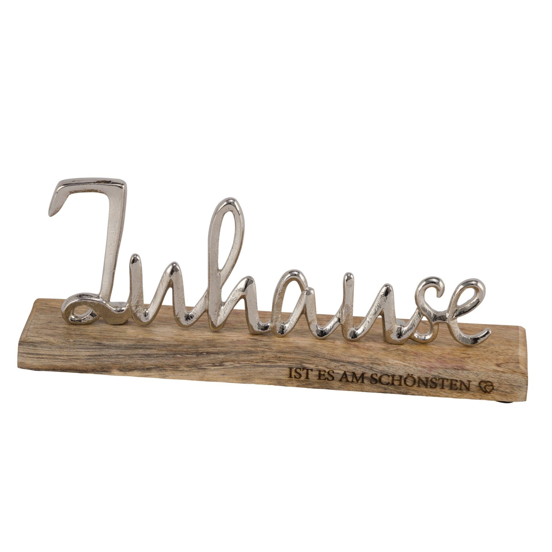 Schriftzug Zuhause Aufsteller aus Metall auf Mangoholzsockel