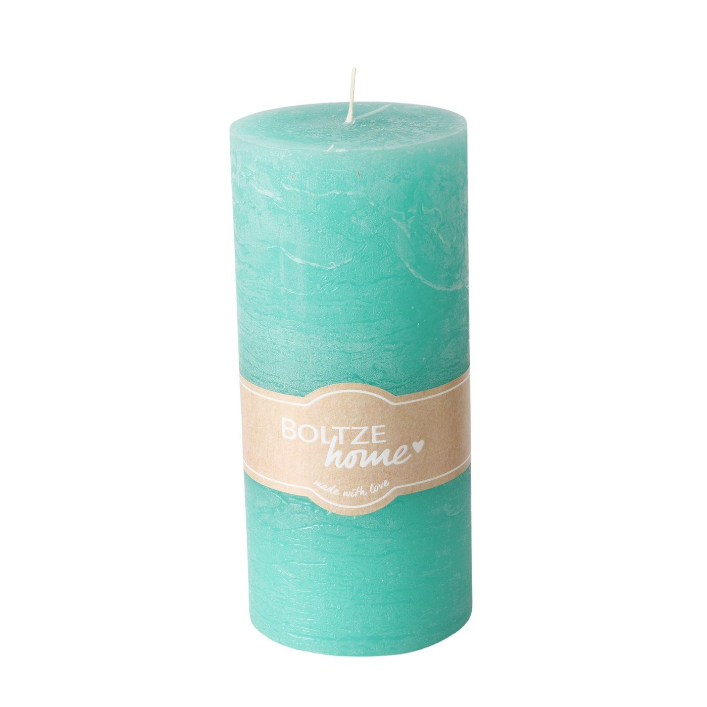 Die Stumpkerze Casual überzeugt durch die tolle Farbe Türkis und die rustikale Oberflächenstruktur.