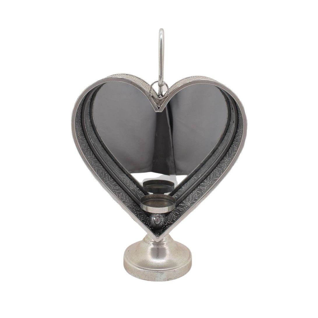 Dieses tolle Herz aus Metall ist ein wunderschöner Kerzenhalter. An der Rückseite hat es einen Spiegel, der das Flackern der Kerze spiegelt.