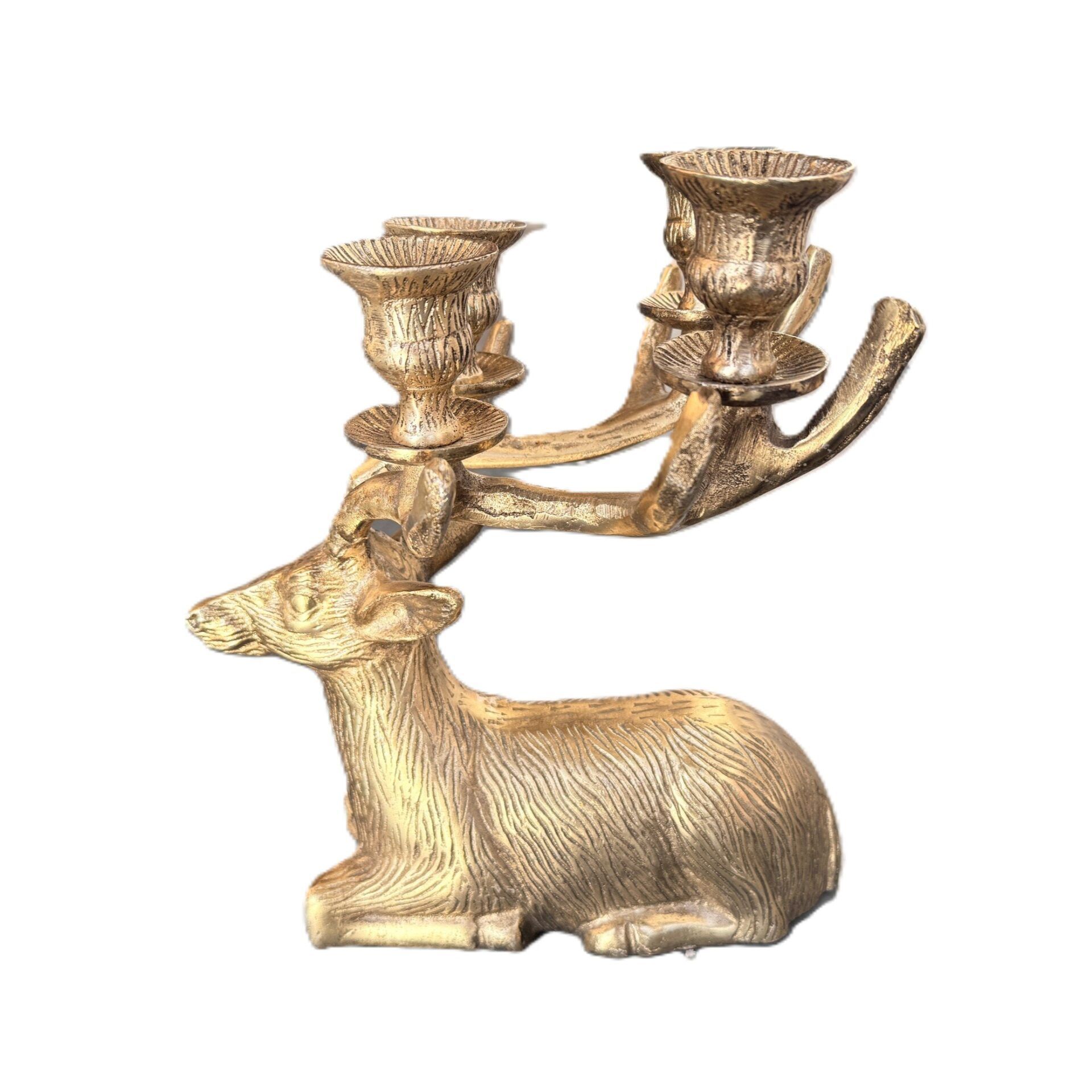 Kerzenständer Hirsch aus Metall für Stabkerzen in Anikgold