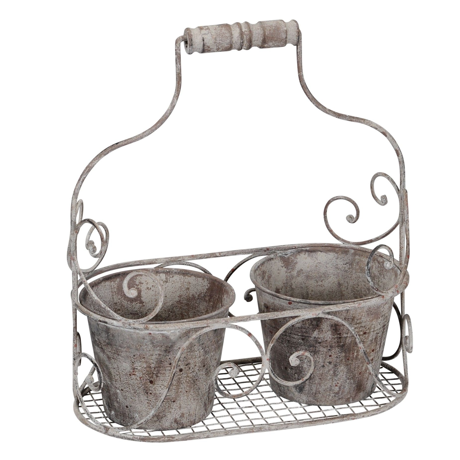 Diese zwei Töpfe sind in einem Korb aus Metall mit grauem Schleier (Shabby-Look).