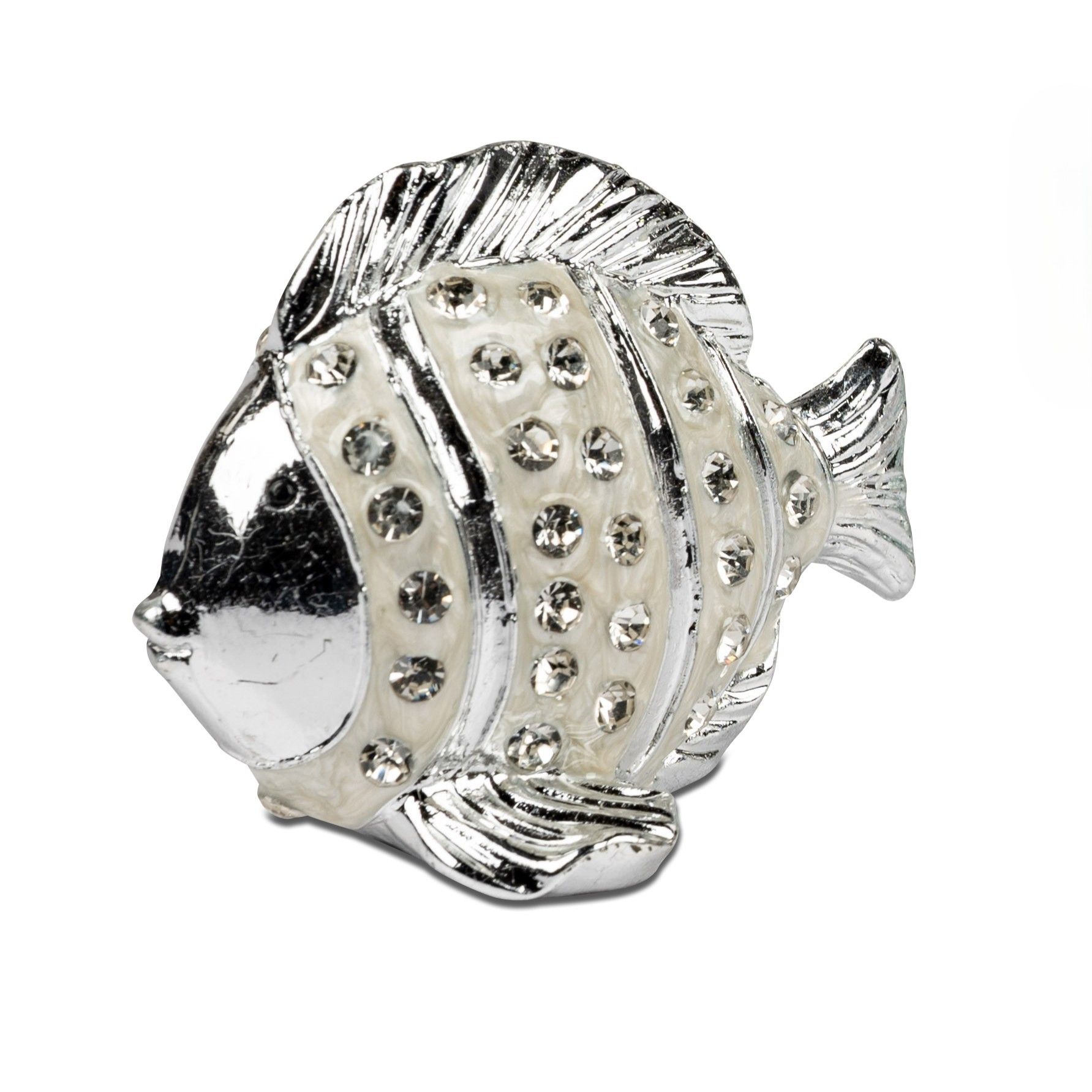 Edle kleine Dekofigur Fisch in Weiss, mit Glassteinen verziert. Er schimmert und glänzt toll, dazu passt er in jede Deko.