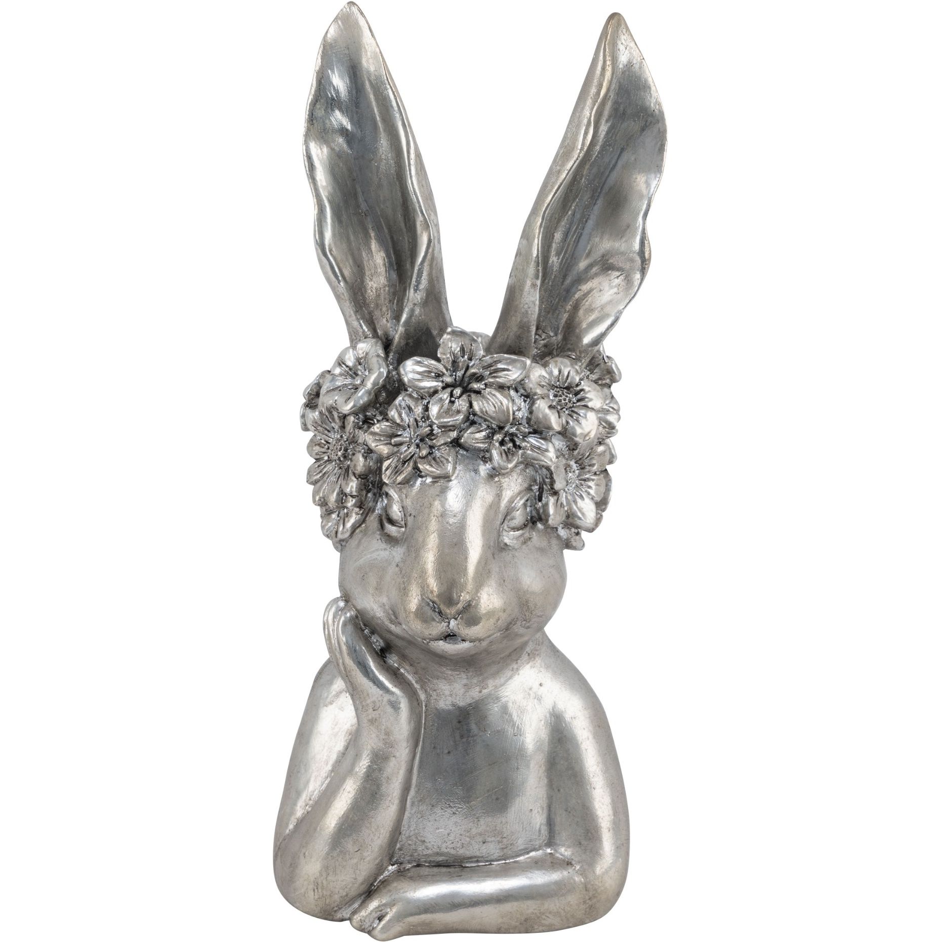 Hasenbüste mit Blumenkranz in Silber 34 cm