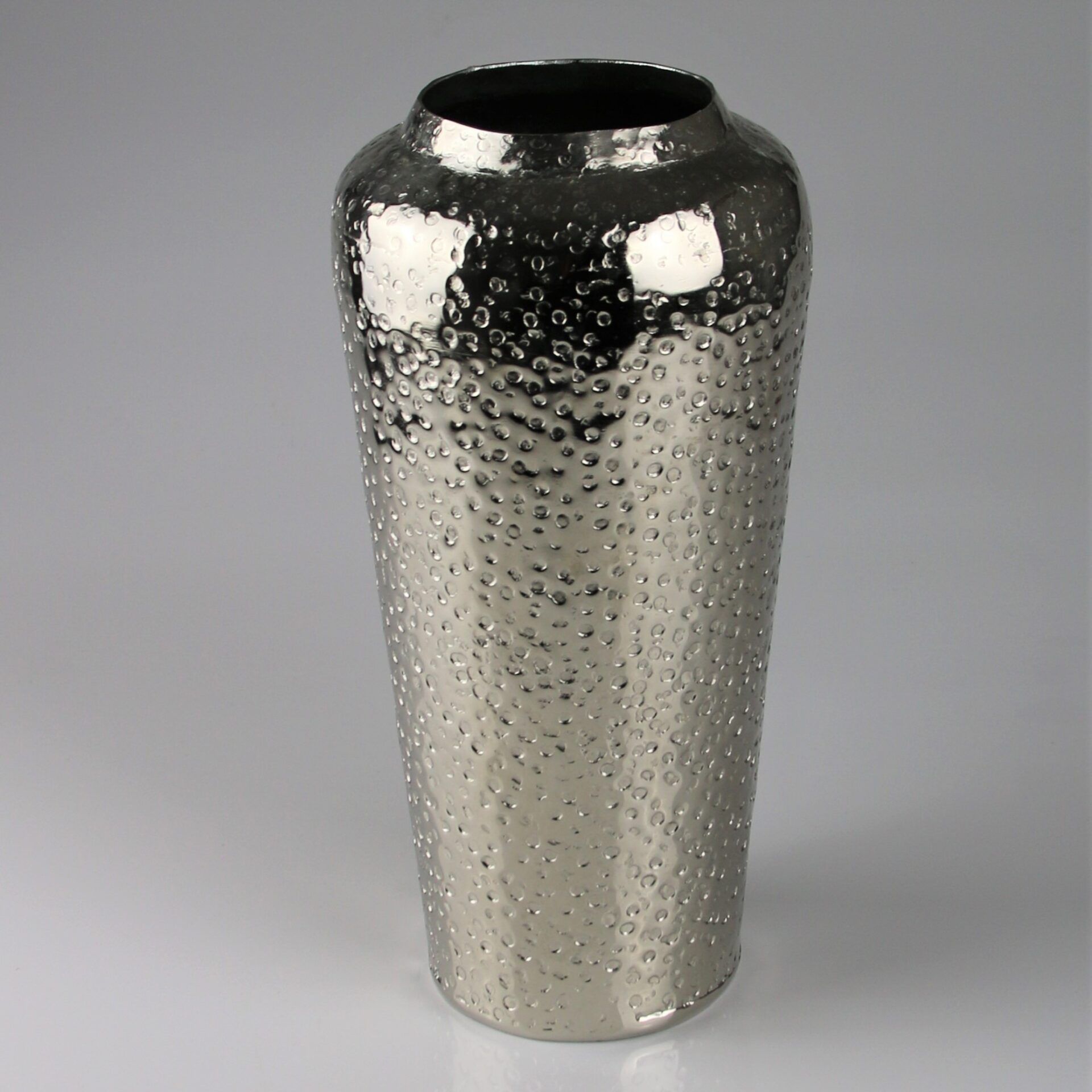 Dekorative Vase aus Aluminium in Silber mit gehämmerter Oberfläche. Sehr edel verarbeitet und ein echter Blickfang.