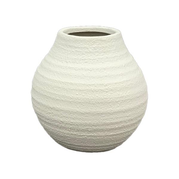 Dekorative Vase mit aus Terrakotta in der schlichten Farbe Creme. Die spezielle Oberfläche sieht sandig aus und verleiht der Vase einen coolen Touch.