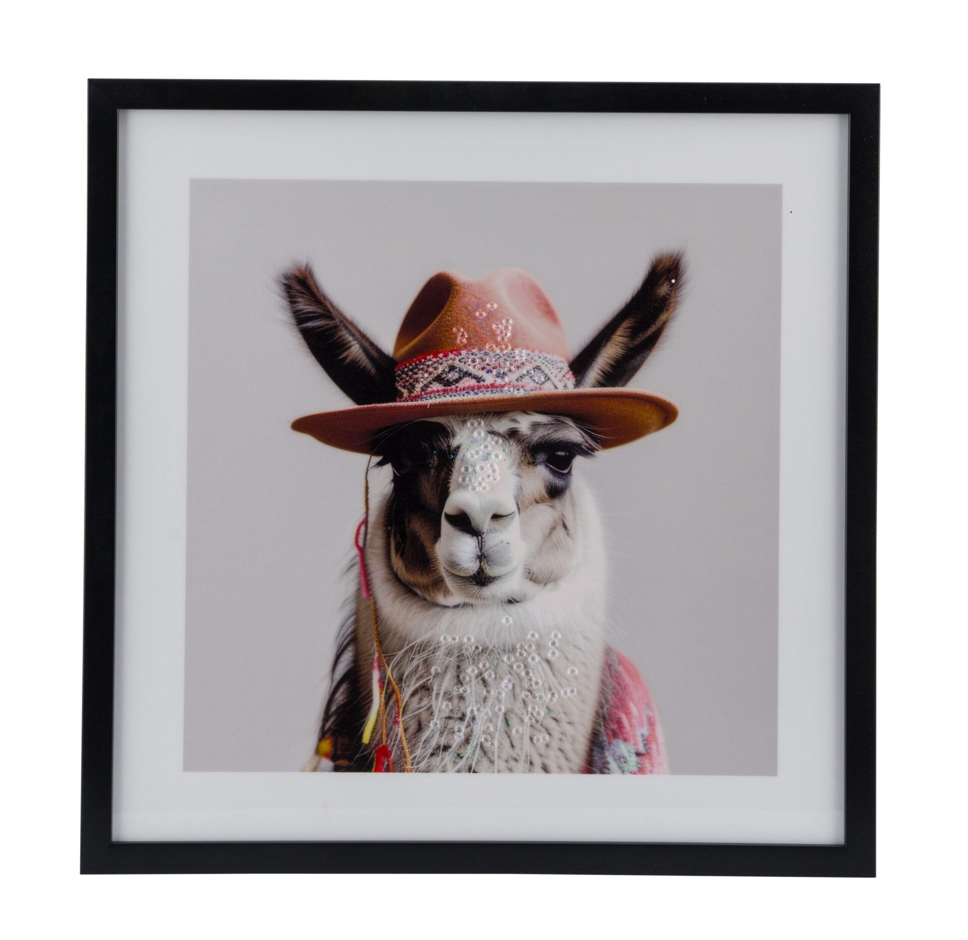 Bild mit Lama Motiv hinter Plexiglas mit funkelnden Highlights