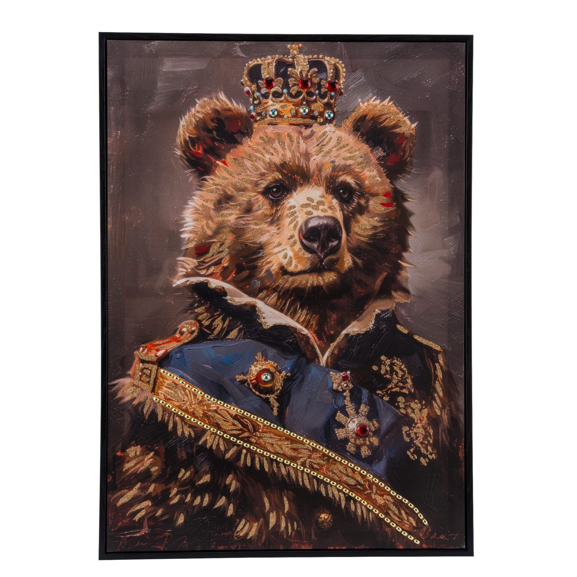 Canvasbild mit Rahmen / Bär mit Glassteinen und Glitter verziert