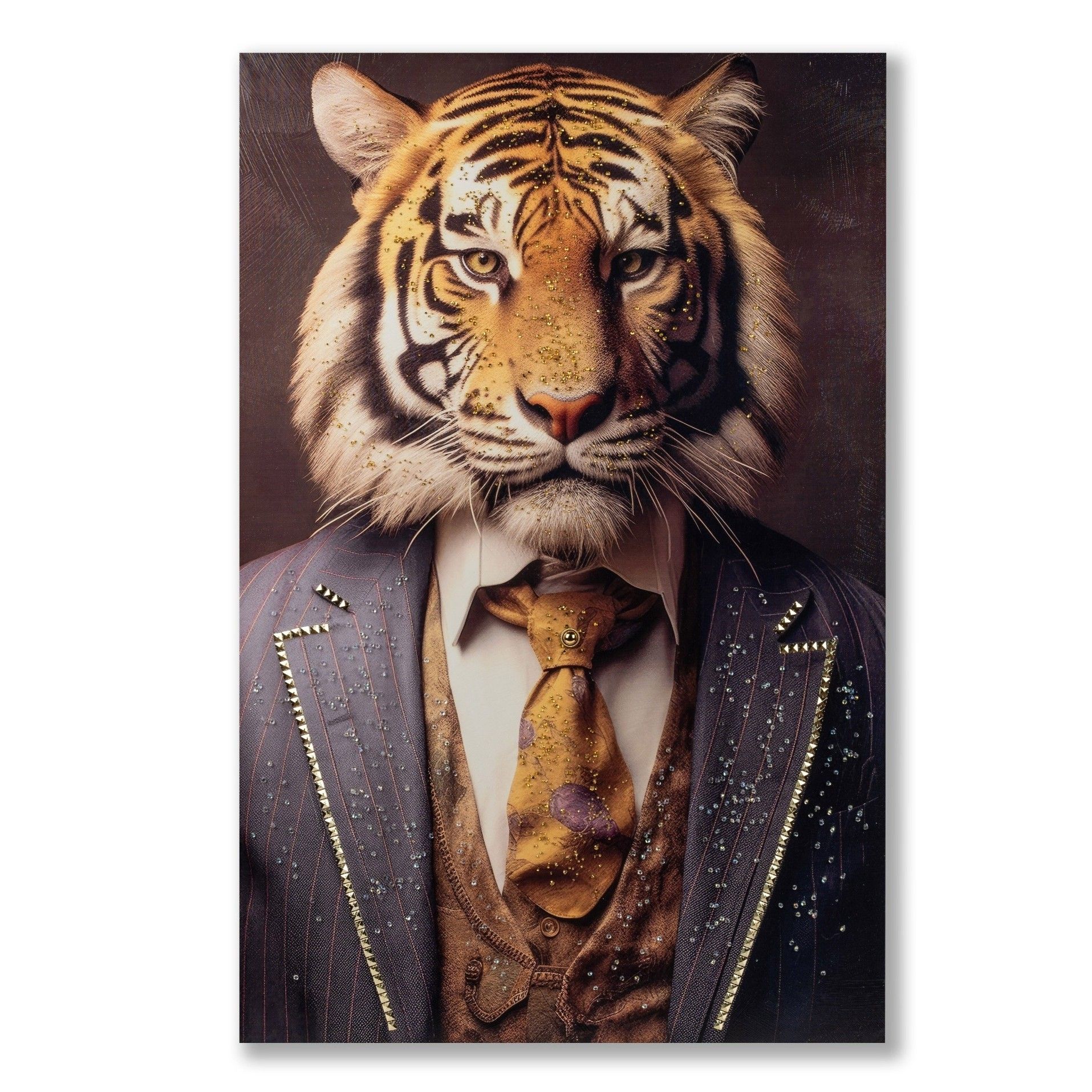 Wandbild Leinwand Tiger im Anzug mit glänzenden Acryl-Steinen